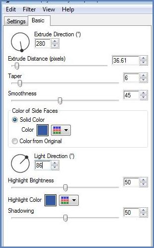 13 - Effets/ Eye Candy 5-Impact/ Effets Extrude réglages suivants :