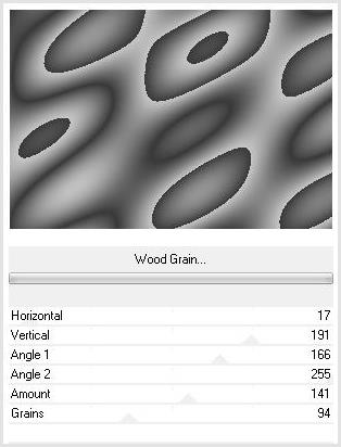 13 - Effets/ Filter Factory Gallery A / Wood Grain réglages suivants :