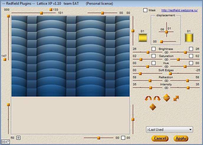 5 - Effets/Redfield Plugin /Lattice XP réglages suivants: