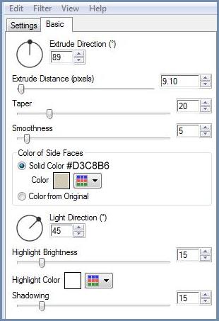13 - Effets/ Eye Candy 5-Impact/ Effets Extrude réglages suivants :