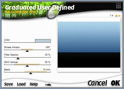 18 - Activer le calque 2 Effets/Nick Color Effex Pro!1.0e / Graduated User Defined réglages suivants: couleur #BBCEDC