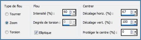 6 - Réglages/Flou/Flou radial réglages suivants :
