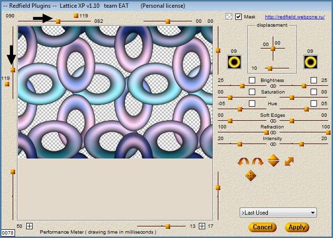 12 - Effets/Redfield /Lattice XP réglages suivants :
