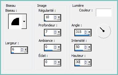 14 - Effets/Effets 3D/Biseautage Intérieur réglages suivants :