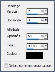 **Effets/Effets 3D/Ombre Portée : 2/3/60/30,43/couleur #000000