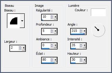 **Effets/Effets 3D/Biseautage Intérieur réglages suivants :