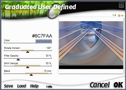 18 - si vous souhaitez appliquez le filtre sur le calque fusionné Nick Color Effex Pro!1.0e / Graduated User Defined réglages prédéfinis couleur #6c7faa