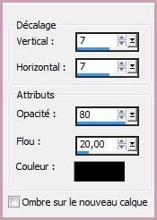 13 - Activer le calque 1 Effets/Effets 3D/Ombre Portée : 7/7/80/20/couleur #000000