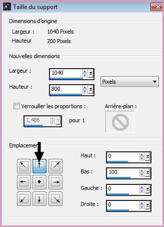 12 - Image/Taille du support réglages suivants : 1040/800
