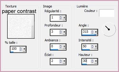 remplir de couleur #cda1b8 15 - Effets/Effets de Textures/Texture réglages suivants : paper contrast