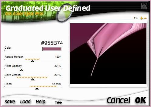 18 - si vous souhaitez appliquez le filtre sur le calque 2 Nick Color Effex Pro!1.0e / Graduated User Defined réglages prédéfinis couleur #955b74