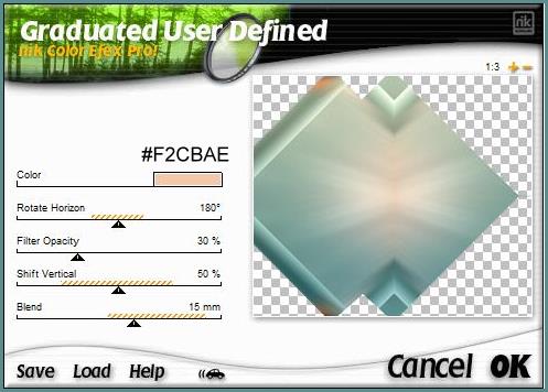 **Couches/Dupliquer **Image/Renverser horizontalement ( Miroir) **Couches/Fusionner le calque du dessous ** Effets/Graduaded User Definer réglages suivants: