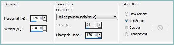 10 - Effets/Effets de Distorsion/Distorsion de l'objectif réglages suivants :