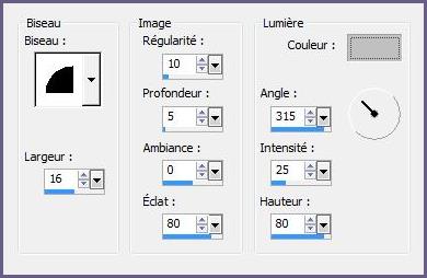 14 - Effets/Effets 3D/Biseautage Intérieur réglages suivants :