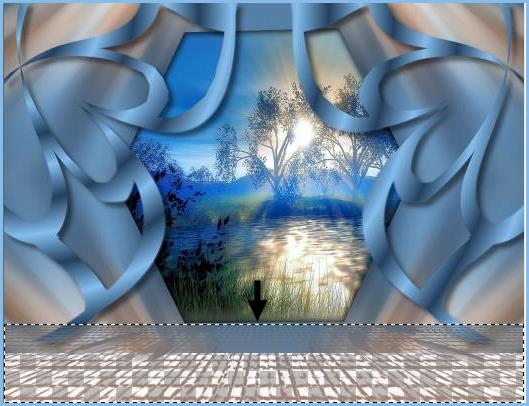 8 - Calques/Nouveau calque Activer le tube anna.br_azul_15-08-10.pspimage (fusionner les deux calques inférieurs recadrer sur le paysage ) **Edition/Copier/Edition/Coller dans la sélection Sélection/Ne rien sélectionner ** Calques/Réorganiser/Déplacer vers le bas