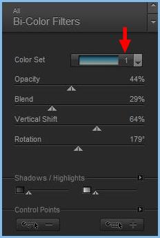17 - Effets/ Color Effex Pro 3/ Bi-colorf filters réglages suivants : Preset cool warm/preset 01