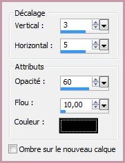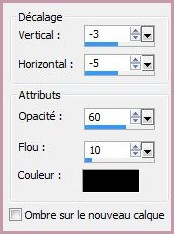 ** Effets/Effets 3D/Ombre Portée : -3/-5/60/10/couleur #000000
