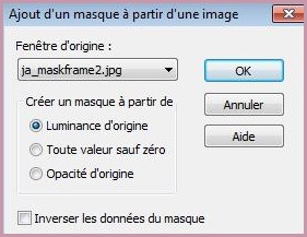 11 - Activer le masque ja_maskframe2.jpg Calques/Nouveau calque de masque/à partir d'une image/Ajout d'un masque à partir d'une image sélectionner le masque ja_maskframe2.jpg
