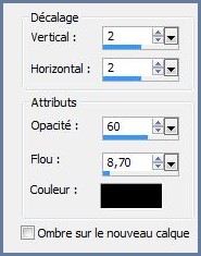 **Effets/Effets 3D/Ombre Portée : 8/-6/40/25/couleur #000000