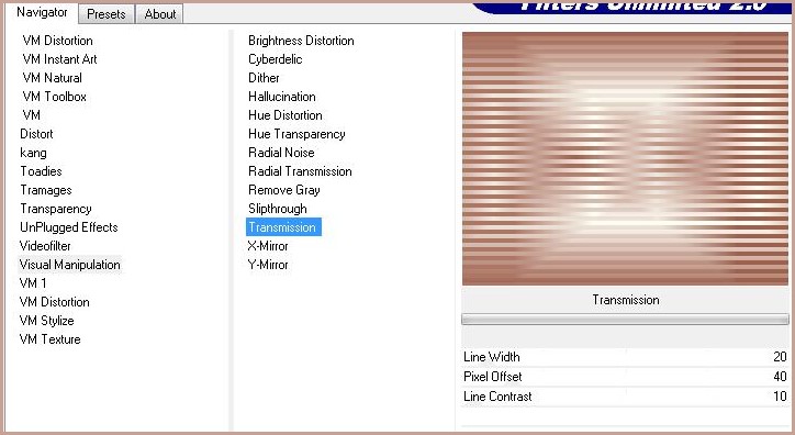 4 - Effets/Unlimited 2.0/ Visual Manipulation/ Transmission réglages suivants :