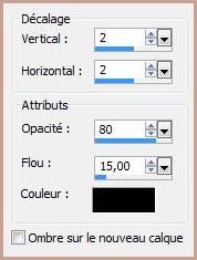 **Effets/Effets 3D/Ombre Portée : 2/2/80/15/couleur #000000