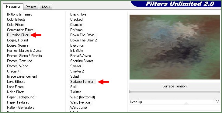 6 - Effets/Unlimited 2.0/ distortion filters / Surface Tension réglages suivants :