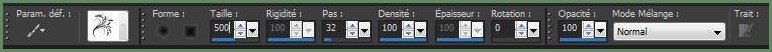 13 - Calques/Nouveau calque **Placer un motif or en premier-plan **Activer l'outil pinceau et rechercher le pinceau floral_deco_brusches_2_by_ro_stock_23 configuré ainsi :