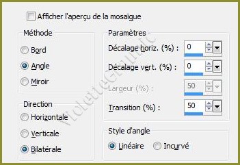 10 - Effets/Effets d'image/Mosaïque sans jointure réglages suivants:
