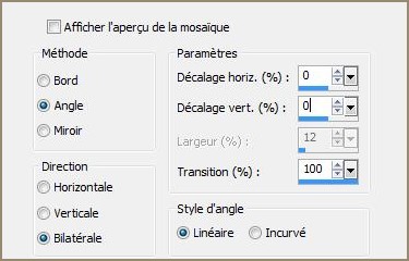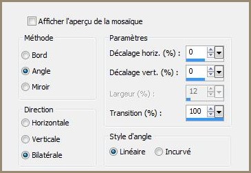 30 - Effets/Effets d'image/Mosaïque sans jointure réglages suivants :