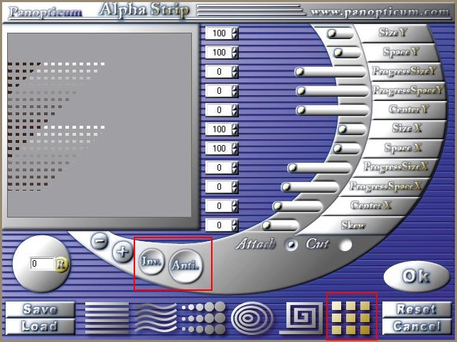 19 - Calques/Dupliquer Effets /Panopticum / PAN Alpha Strip réglages suivants :