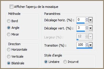 11 - Calques/Dupliquer **Effets/Effets d'image/Mosaïque sans jointure réglages suivants :
