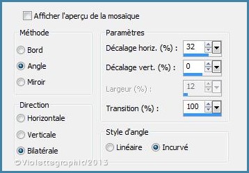 10 - Calques/Dupliquer Effets/Effets d'image/Mosaïque sans jointure réglages suivants :