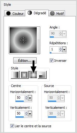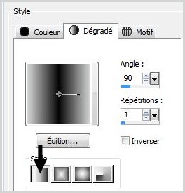 ***Dans la Palette de Style Configurer un dégradé linéaire/angle : 90/Répétition: 1