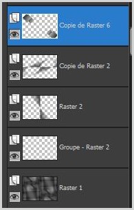 22 - Calques/Réorganiser/Déplacer vers le bas 23 - Activer le calque supérieur Calques/Fusionner le calque du dessous 24 - La palette des calques se présentent ainsi: