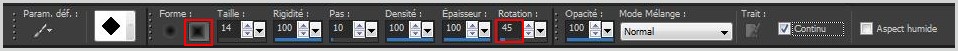 29 - Calque /Nouveau calque 30 - Activer l'outil pinceau configuré ainsi: carré /rotation : 45