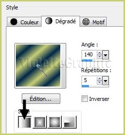 ***Dans la Palette de Style Configurer un dégradé linéaire/angle: 140/Répétitions: 5