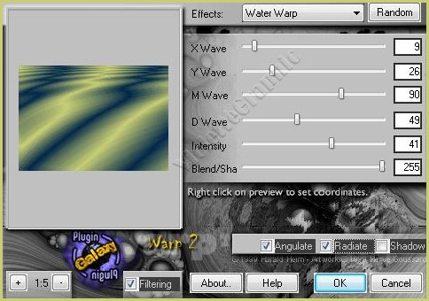2 - Effets/ Plugin Galaxy /Water Warp réglages suivants :