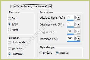 11 - Effets/Effets d'image/Mosaïque sans jointure réglages suivants :