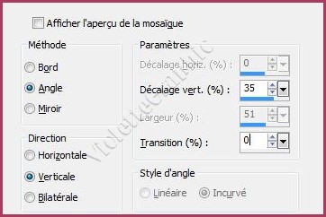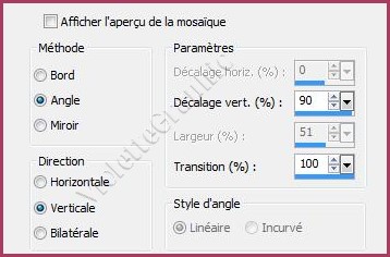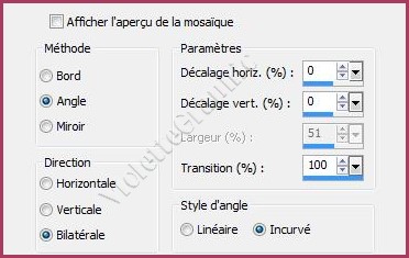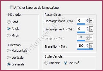 19 - Effets/Effets d'image/Mosaïque sans jointure réglages suivants: