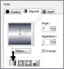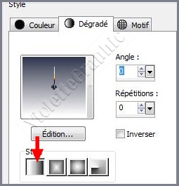 ***Dans la Palette de Style Configurer un dégradé linéaire/angle : 0//Répétition: 0