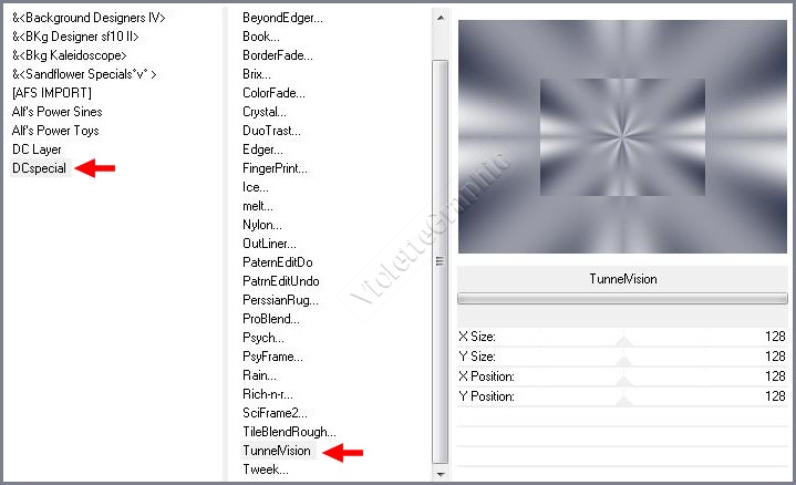 3 - Effets/DCspecial / TunnelVision réglages suivants :