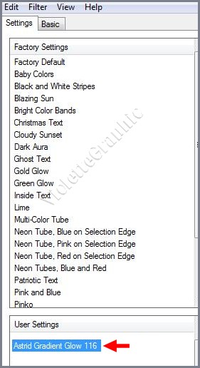 9 - Effets/AlienSkin/EyeCandy5 Impact / Gradient Glow Appliquer le preset Astrid gradient Glow 116