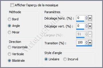 5 - Calques/Dupliquer 6 - Effets/Effets d'image/Mosaïque sans jointure réglages suivants:
