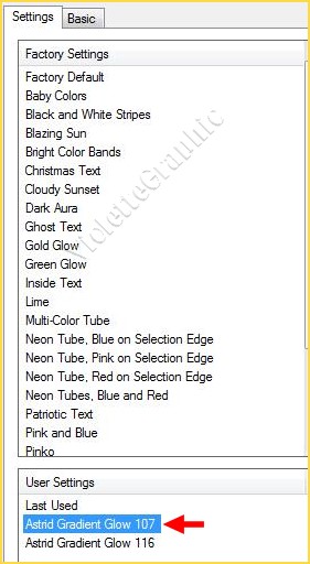 12 - Effets/AlienSkin/EyeCandy5-Impact/gradient Glow Appliquer le preset Astrid Gradient Glow 107