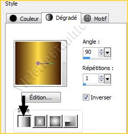 17 - Avec les couleurs de départ Configurer ce dégradé linéaire/ angle : 90/ répétition: 1/ inverse coché