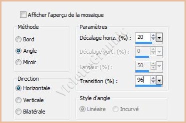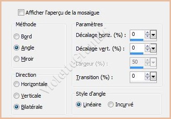 8 - Effets/Effets d'image/Mosaïque sans jointure réglages suivants: