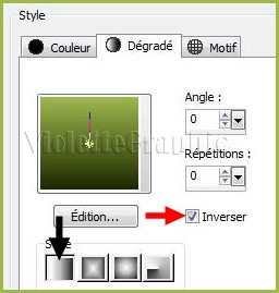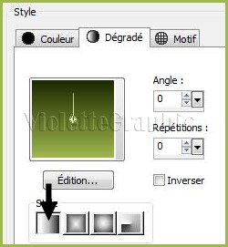 ***Dans la Palette de Style Configurer un dégradé linéaire/angle : 0//Répétition: 1