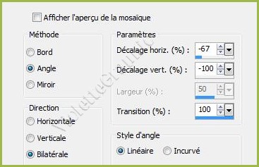 11 - Effets/Effets d'image/Mosaïque sans jointure réglages suivants: