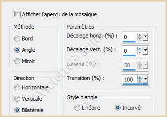 35 - Effets/Effets d'image/Mosaïque sans jointure réglages suivants: