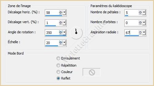 24 - Calques/Dupliquer Effets / Effets de réflexion/ kaléidoscope réglages suivants: